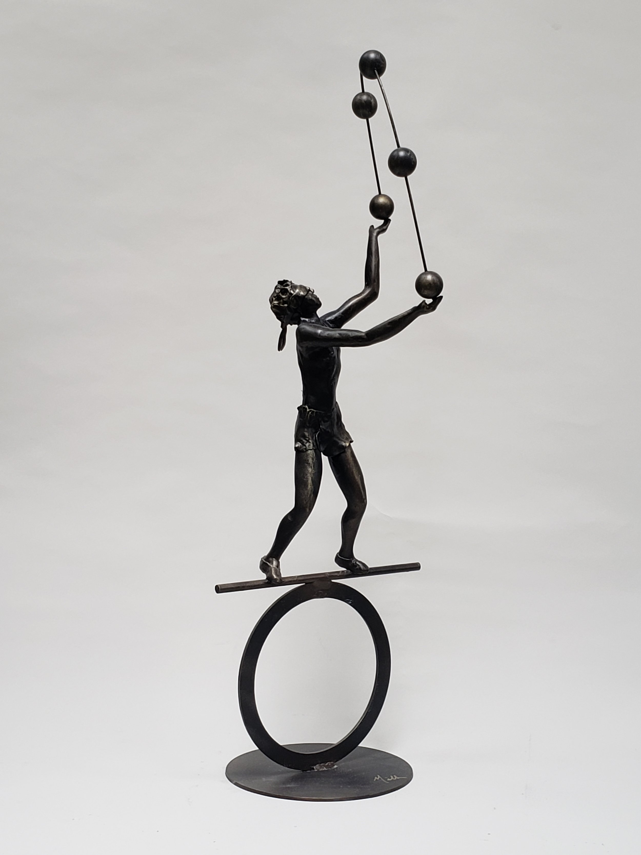 I have developed a simple method of constructing the figure based on a classical emphasis of strength, proportion and balance. All materials are easily available from many hardware stores. All sculptures are made from steel rods, aluminum foil, cements, epoxy clay and metallic paints. Each piece is made for longevity and suitable for outdoors.